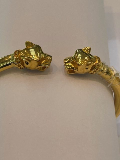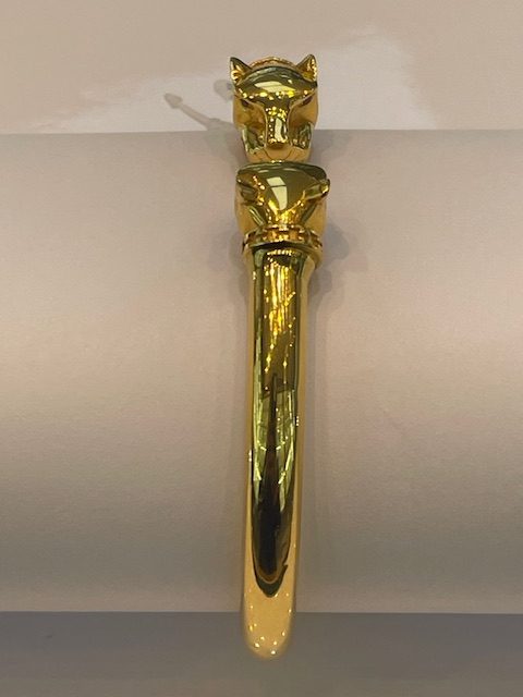 - Design: Dual panther-head open cuff style